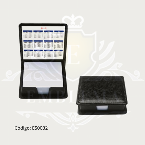 Porta taco sin calendario sobre tapa, provee un tacos tipo post-it. 200 hojas Aprox.Material: Símil Cuero colores disponibles: Base negra