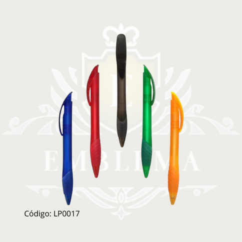 Lapicero plástico retráctil de color traslúcido, con goma antideslizante en la base.Color de tinta: Azul.